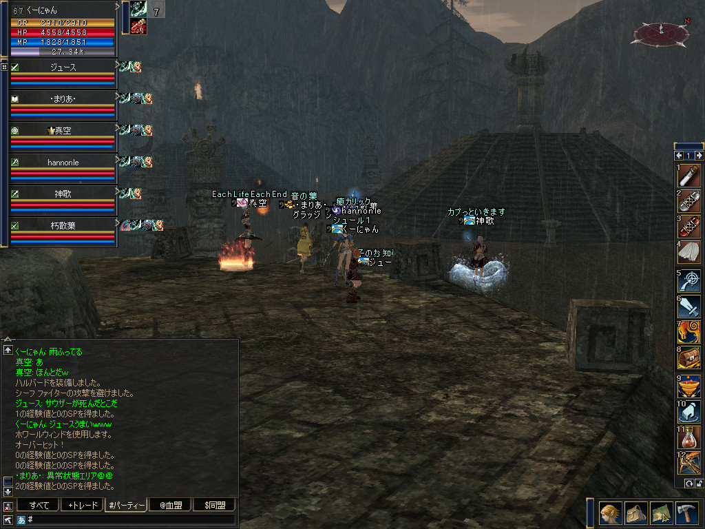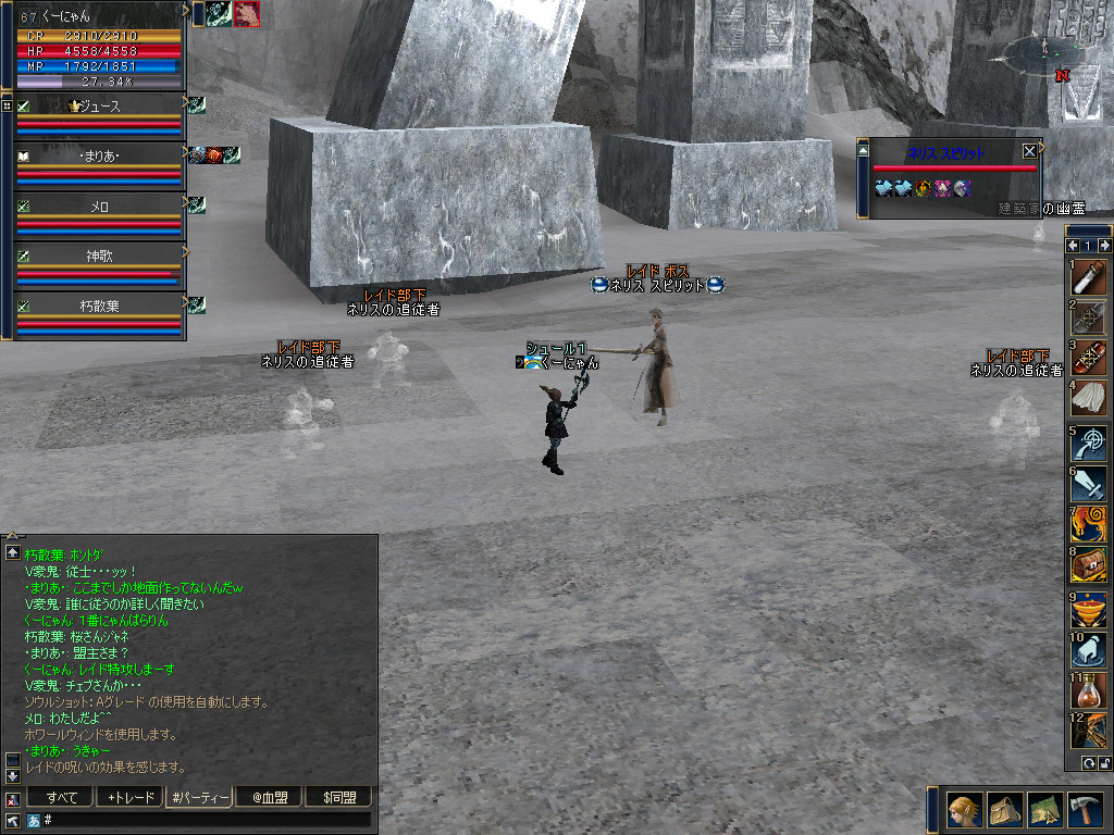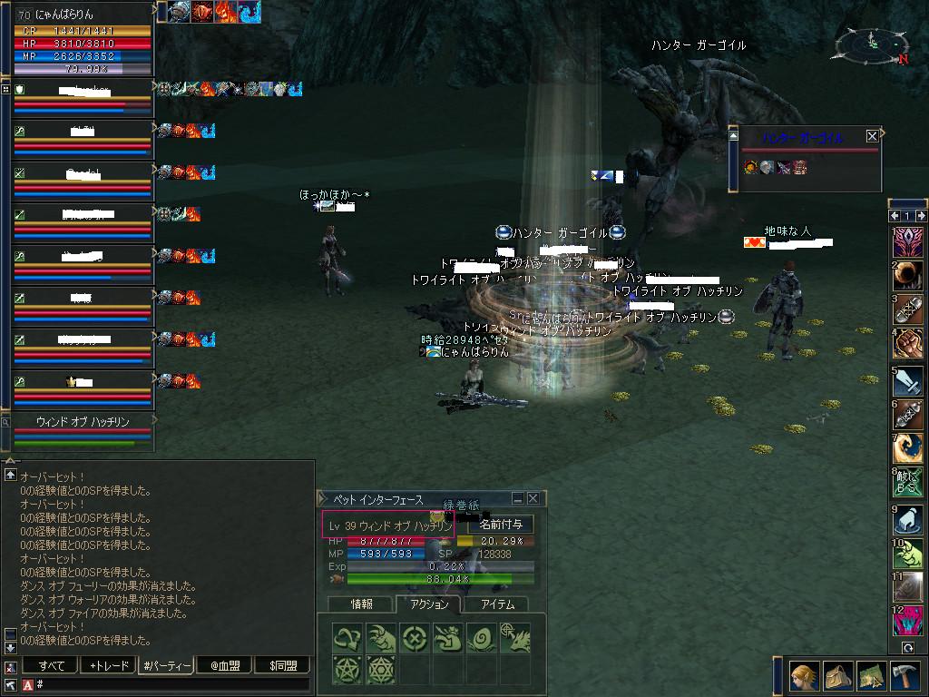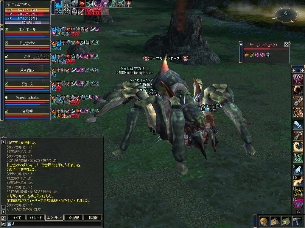 デモネ。混みすぎMOB少なすぎ沸きすぎの3重苦でした。そんな中であっても、色んな人の協力の下、同盟全員分のグレーターマイト書を確保。