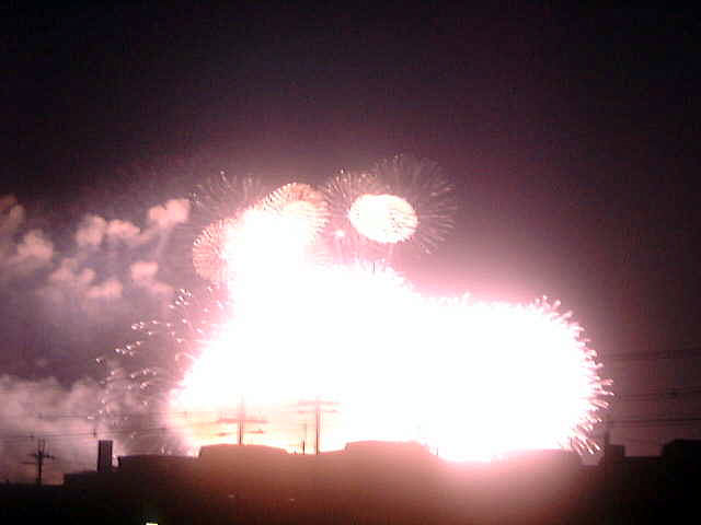 風が吹かない時は、仕方なしにまだ煙が残った状態でも打ち上げるんですが、遠くはなれた場所では、煙に鈍く写った光と「ポンッ」っていう気の抜けた音しか聞こえてきませんw