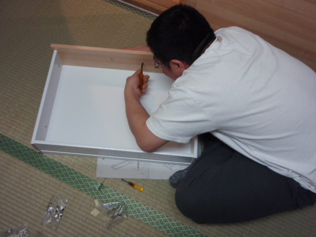 後はもうドアを取り付けるだけだったので、和室の中を片付けて箪笥を移動・・・