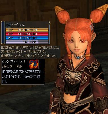 血盟ポイントが1500+になったので、以前から用意していた「大地のタマゴ:Aグレード」を使って【クランボディ】を覚えてみましたー!