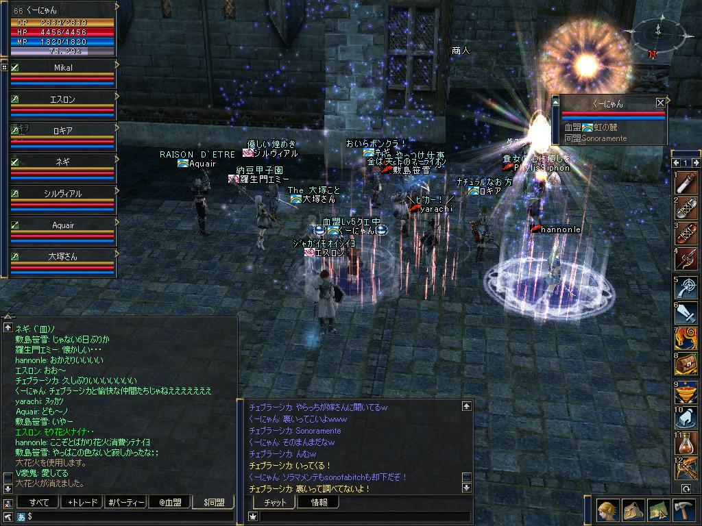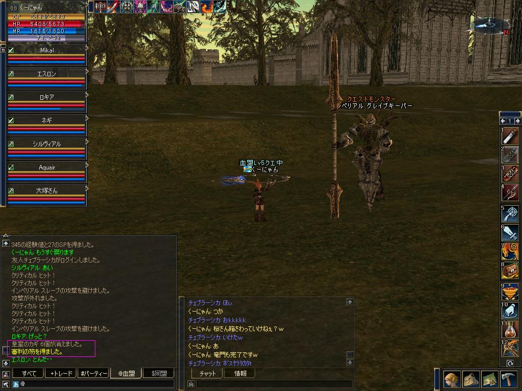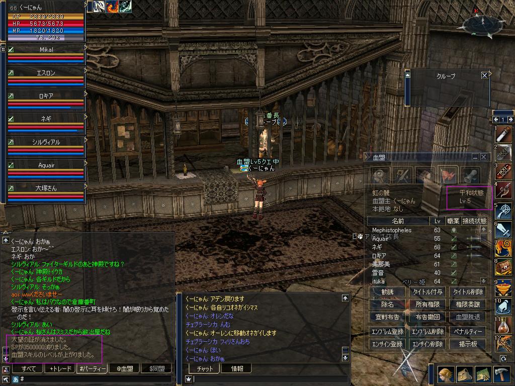 ついでにといっては何ですが、C5でできる血盟スキル取得の為に虹の麓血盟もLv5にしちゃえってことで、竜門改めチェブラーシカさん率いるDragons Gate血盟と、羅生門エミーさん率いる壺血盟と共にクエストを結構することに。