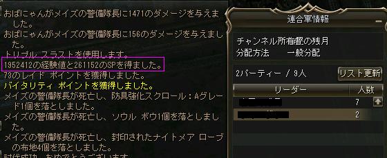 通常だと900k~1.3M程のexpが1.9Mきております(組んでいるPTのメンバーLvによって変動する模様)