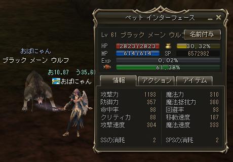 最近DVC卵ツアーに行くことが多いので、ウルフをお供にしていたらLv61になりました。