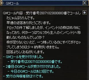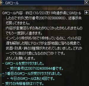 その後GMコール(20071023000903は返事が来ず、翌日の20071024000944)の回答により、こちらへ復旧申請させていただいております。