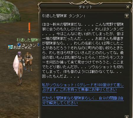 なんていいつつ狩りをしていたら、いつの間にやら沸いたおじいちゃんNPCを発見。