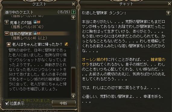 後から調べてみたら、このクエスト、じいちゃんが無事に戻ったバージョンのほうもあるらしく、その場合の報酬は5026a+Dzelだそうです。