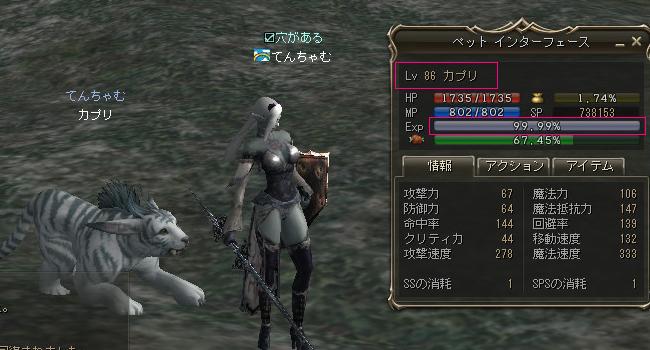どうせならレベルキャップ解除MAXまでいってやれ!ってことで、ハウラーに追尾させたら1日でLv86 99.99%まで育ちやがりました。