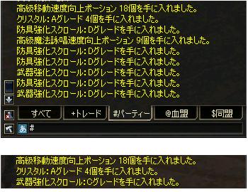 まぁー無難なところに落ち着いたわけで・・・解散しようかとおもいきや、何人かがINしてきたので、もういっちょ割るかーということで、更に追加。