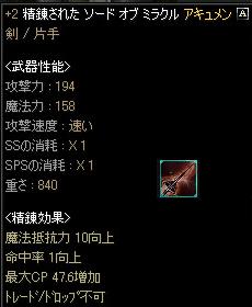 防具は店売り最強の240kで止めて(どうやら最上級防具にしてもDEFは誤差範囲らしい)、武器だけイイモノにしました。