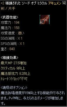 最初クリスにやろうかなーと思ってたんだけど、武器移動不可なのを考慮すれば、やっぱりチャレンジできるのはSOMだけかなーと判断し、初の精錬をドキドキしながらやりました!
