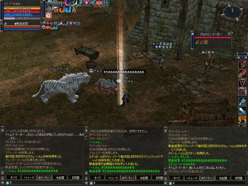 平日のリネはINしてもすぐ眠くなってしまうので同盟ハントもなかなか参加する機会がございません。