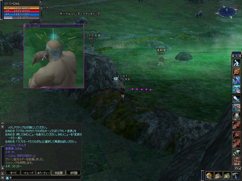 種の清算でINするとちょうどリネは夜時間なんです。夜でしか釣れないアイテムのために釣りをしていますが、それよりもほしいのがコレ。