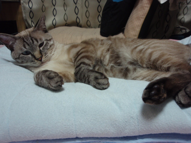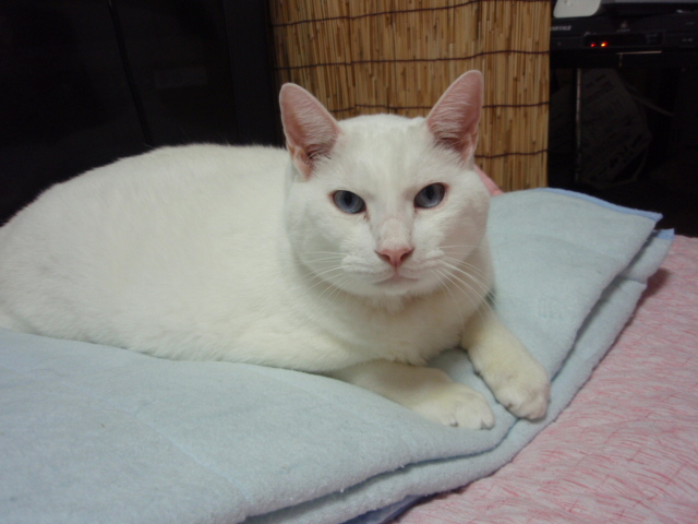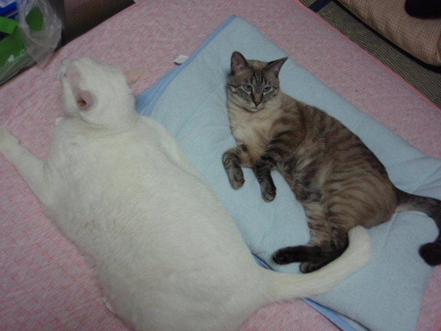 だってその下に敷いてる青いのは母ちゃんの掛け布団なんだもん・・・どいて欲しいw